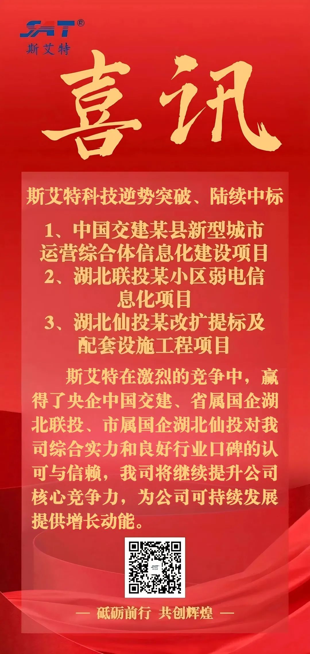 斯艾特科技成功中標(biāo)央企中國交建、省屬國企湖北聯(lián)投、市屬國企湖北仙投三大項目