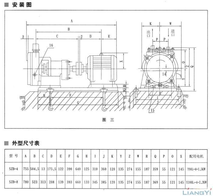 目前制造的本型號泵有:SZB-4、SZB-8。其中4(8)表示當(dāng)水銀柱高為520毫米時(shí)的氣量(升/秒)。